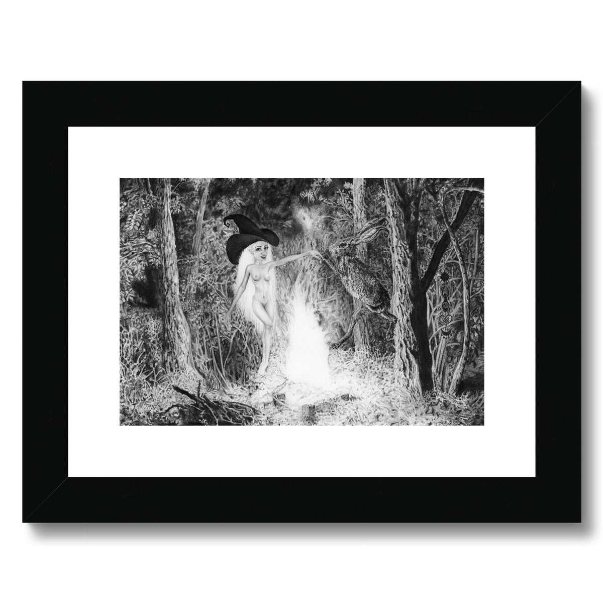Print shows the beautiful details of the original naked witchy and hare ritual drawing. This print is unsigned. Witchy forest print is carefully profiled for fantastically accurate and consistent reproductions using giclée printing techniques.