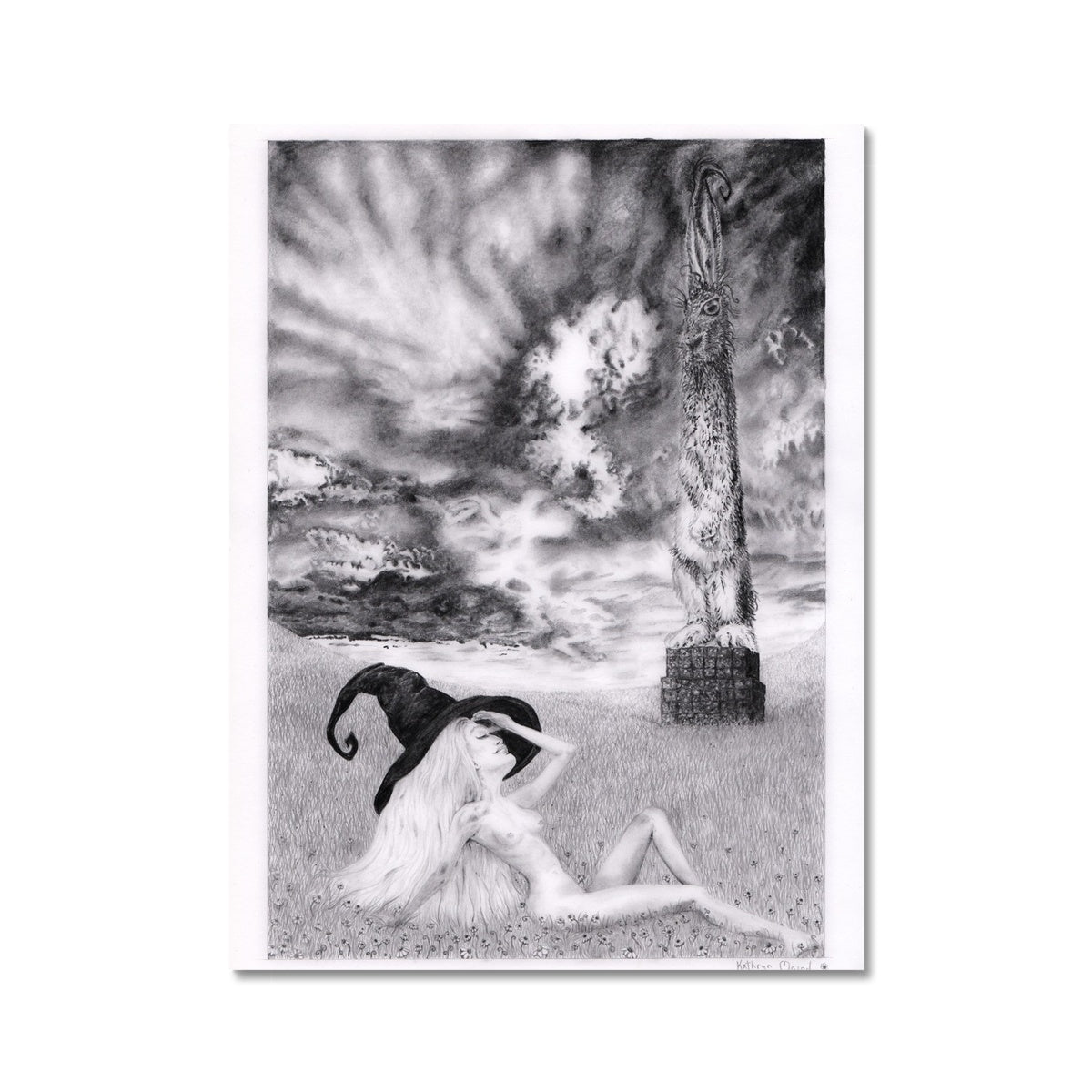 Print shows the beautiful details of the original weird naked witchy drawing, smudges, signature and all, lovely! Print carefully profiled for fantastically accurate and consistent reproductions using giclée printing techniques.