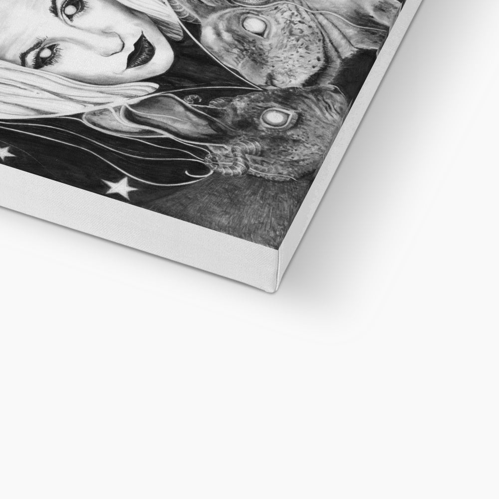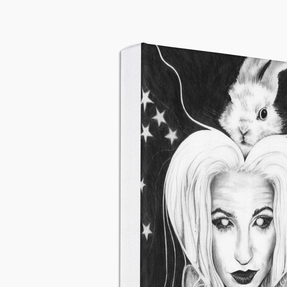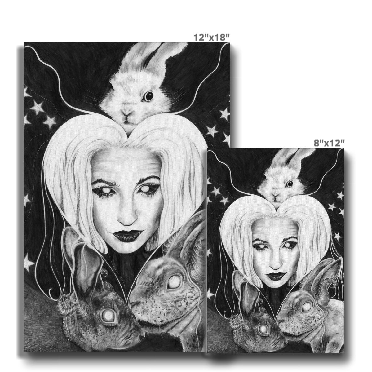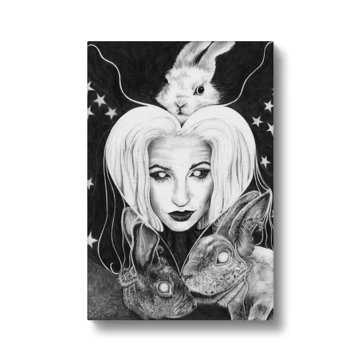 These fine art print canvases showcase Kathryn Mason's beautiful original occult style self portrait artwork wonderfully, featuring her beloved bunnies!